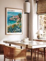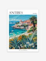 Experience the allure of the French Riviera with our stunning Antibes travel poster, featuring the town’s charming old quarter, luxurious yacht-filled harbor, and sun-drenched Mediterranean beaches. This captivating print is perfect for France enthusiasts, coastal lovers, and anyone seeking to add a touch of Côte d’Azur glamour to their home or office decor.