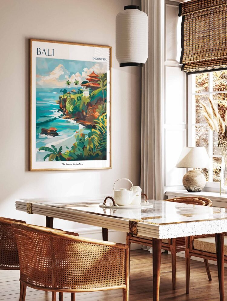 Immerse yourself in the tropical paradise of Bali with this vibrant travel poster. Ideal for home decor or a gift for the island lover, this poster captures the beauty and serenity of Bali’s landscapes and culture.