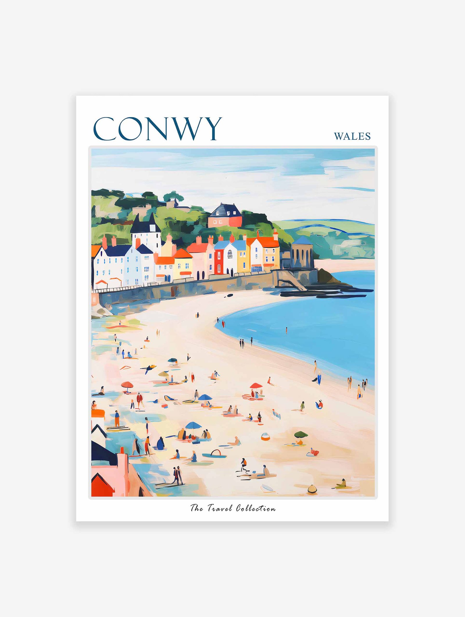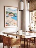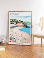 Immerse yourself in the medieval charm of Conwy with this captivating travel poster. Perfect for home decor or a gift for the history buff, this poster showcases the iconic Conwy Castle and the town’s picturesque walled streets.