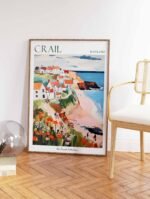 Discover the timeless charm of Scotland’s East Neuk with our captivating Crail travel poster, showcasing the picturesque harbor, historic fishing cottages, and rugged Fife coastline. This eye-catching wall art is perfect for Scottish coastal enthusiasts, fishing village lovers, and anyone looking to bring the authentic beauty of one of Scotland’s oldest royal burghs into their home or office space.