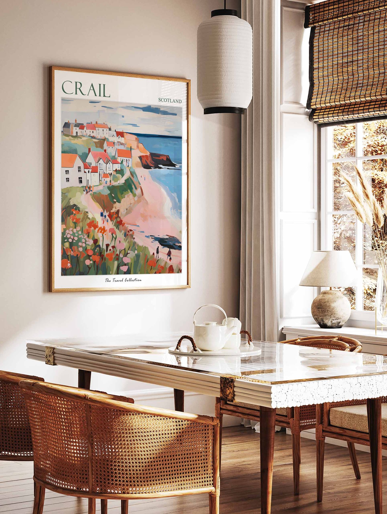 Discover the timeless charm of Scotland’s East Neuk with our captivating Crail travel poster, showcasing the picturesque harbor, historic fishing cottages, and rugged Fife coastline. This eye-catching wall art is perfect for Scottish coastal enthusiasts, fishing village lovers, and anyone looking to bring the authentic beauty of one of Scotland’s oldest royal burghs into their home or office space.