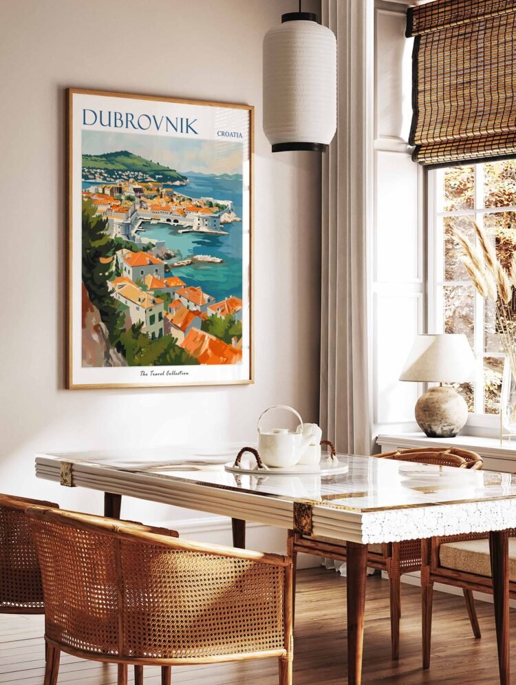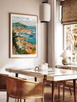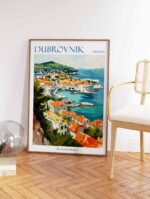 Experience the medieval splendor of Croatia’s crown jewel with our stunning Dubrovnik travel poster, showcasing ancient city walls, terracotta rooftops, and the sparkling Adriatic Sea. This eye-catching wall art is perfect for Game of Thrones fans, Mediterranean travel enthusiasts, and anyone looking to bring the timeless beauty of the “Pearl of the Adriatic” into their home or office space.