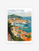 Experience the medieval splendor of Croatia’s crown jewel with our stunning Dubrovnik travel poster, showcasing ancient city walls, terracotta rooftops, and the sparkling Adriatic Sea. This eye-catching wall art is perfect for Game of Thrones fans, Mediterranean travel enthusiasts, and anyone looking to bring the timeless beauty of the “Pearl of the Adriatic” into their home or office space.