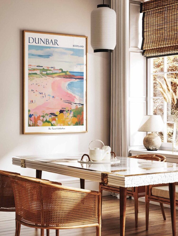 Discover the rugged charm of Scotland’s east coast with our captivating Dunbar travel poster, showcasing dramatic castle ruins, historic harbor, and stunning coastal scenery of this historic fishing town. This eye-catching wall art is perfect for Scottish heritage enthusiasts, coastal lovers, and anyone looking to bring the wild beauty of John Muir’s birthplace into their home or office space.
