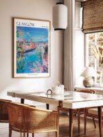 Discover the vibrant city of Glasgow with this captivating travel poster. Perfect for home decor or a gift for the culture enthusiast, this poster showcases the city’s iconic landmarks, thriving arts scene, and friendly atmosphere.