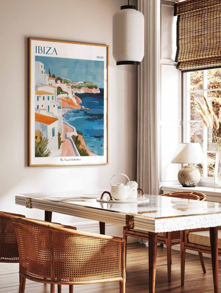Immerse yourself in the vibrant island life of Ibiza with this captivating travel poster. Ideal for home decor or a gift for the party lover, this poster showcases the island’s stunning beaches, buzzing nightlife, and bohemian atmosphere.
