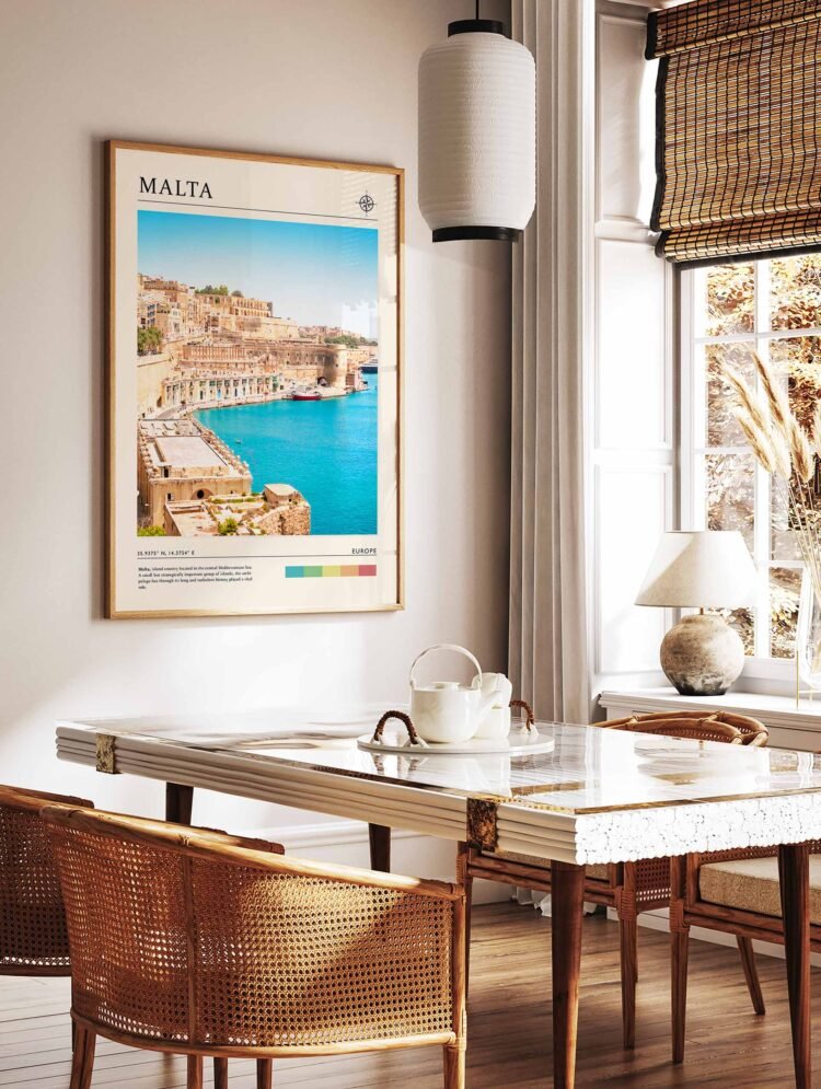 Bring the enchanting allure of Malta to your walls with this captivating Malta travel poster, showcasing the island’s picturesque harbors, historic architecture, and sun-drenched landscapes. Elevate your space with this versatile wall art that evokes a sense of wanderlust and Mediterranean charm.