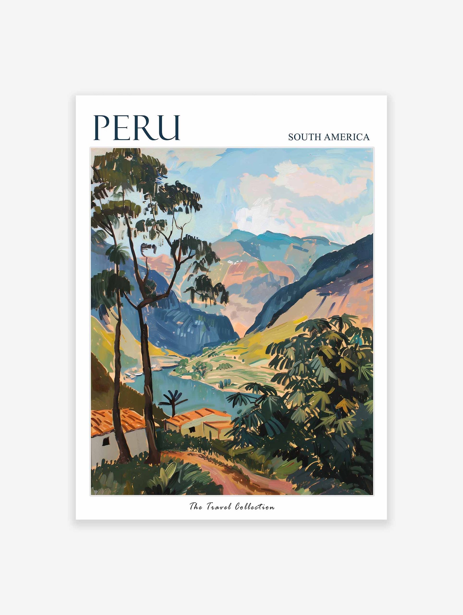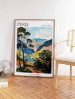 The Peru travel poster showcases the breathtaking landscapes and rich history of this South American gem. From the ancient ruins of Machu Picchu to the vibrant culture of Cusco, this poster captures the essence of Peru and is perfect for history buffs, adventure seekers, and culture enthusiasts.