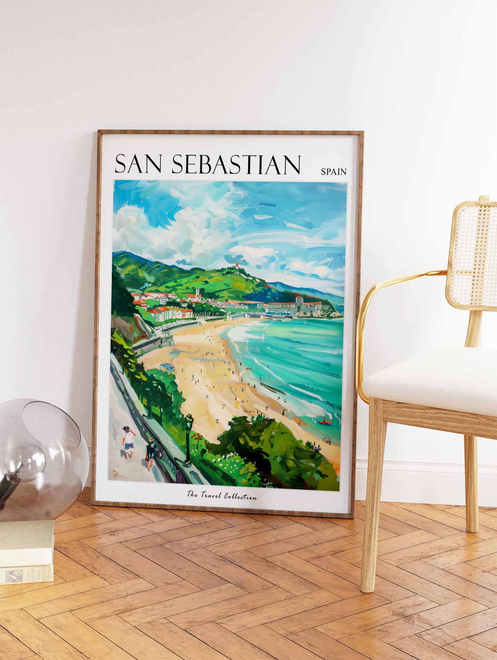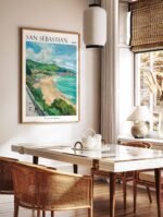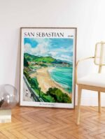 The San Sebastian travel poster captures the vibrant energy and stunning beauty of this Basque coastal city. With its world-class beaches, delicious cuisine, and rich culture, this poster is perfect for foodies, beach lovers, and culture enthusiasts alike.