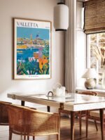 Immerse yourself in the historic city of Valletta with this captivating travel poster. Perfect for home decor or a gift for the history buff, this poster showcases the city’s stunning architecture, fortified walls, and rich cultural heritage.