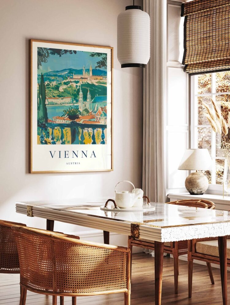 Immerse yourself in the elegant city of Vienna with this captivating travel poster. Perfect for home decor or a gift for the culture enthusiast, this poster showcases the city’s stunning architecture, historic landmarks, and vibrant cultural scene.