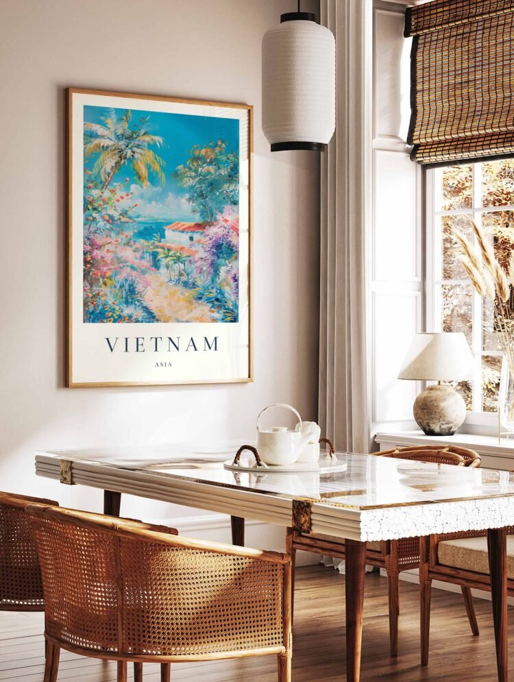 Immerse yourself in the vibrant culture and stunning landscapes of Vietnam with this captivating travel poster. Perfect for home decor or a gift for the adventure seeker, this poster showcases the country’s iconic landmarks, including Ha Long Bay, Hoi An Ancient Town, and the bustling city of Ho Chi Minh City.
